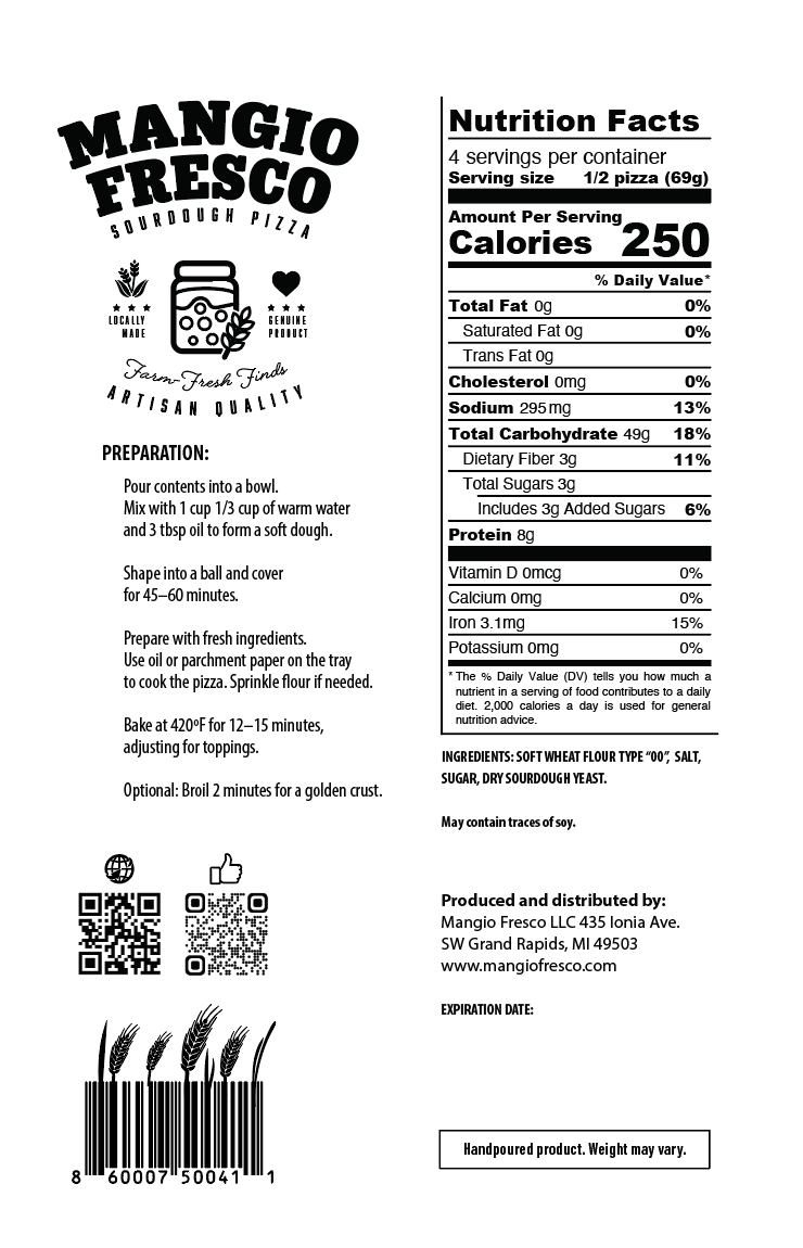 Our Neapolitan-style pizza dough carries the ancient rhythm of fire and fermentation. Each pouch is made with our Italian flour and the living soul of our sourdough, nurtured through generations of family tradition.